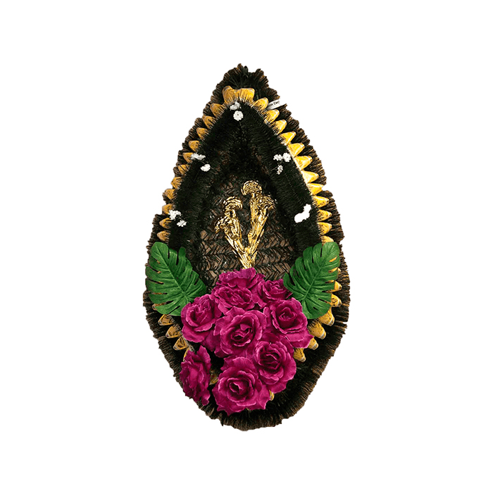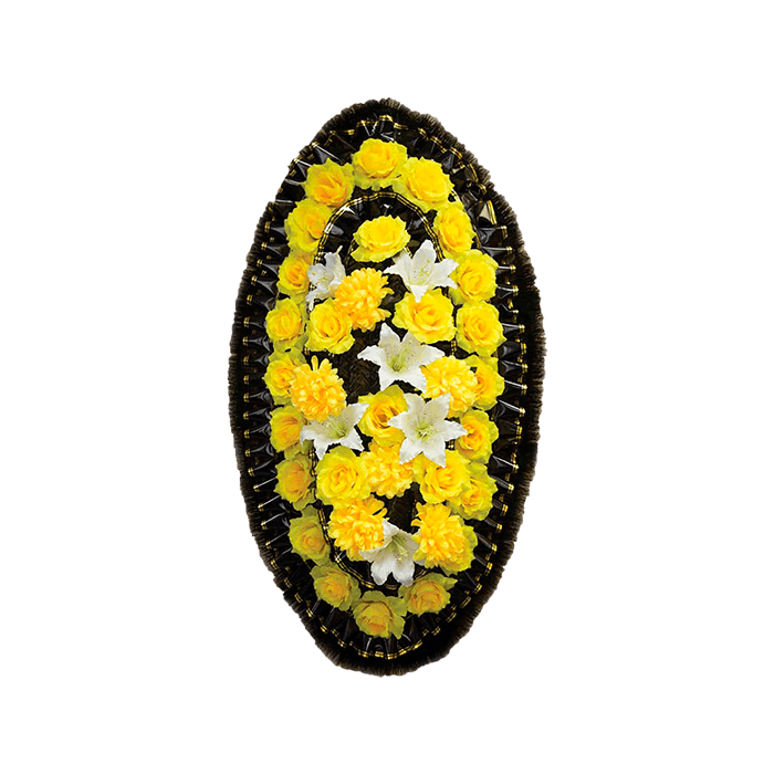 1. Венки из искусственных цветов – классический вид ритуальной атрибутики, сохраняющий свой первоначальный вид до момента похорон и после.
