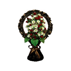 3. Корзины с цветами – разновидность венков, которая может быть выполнена как из живых, так и искусственных цветов. Такие изделия характеризуются оригинальным и нестандартным видом.